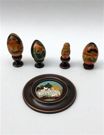 Lotto composto da alcuni oggetti a forma di uova di manifattura russa, e un...