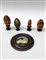 Lotto composto da alcuni oggetti a forma di uova di manifattura russa, e un piattino decorato in smalti