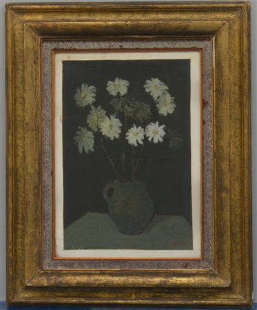 Ignoto, "Vaso con fiori" olio su cartone pressato (cm 45x34) reca firma Salardi in basso a destra, in cornice(difetti)