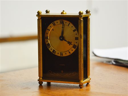 LE COUTRE Orologio da tavolo in ottone, quadrante con numeri romani,...