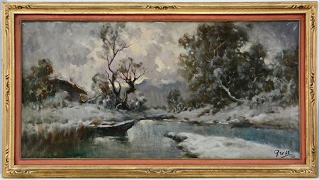 Gress "Paesaggio innevato" olio su tela (cm 59x121) firmato in basso a...
