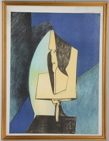 "Senza titolo" litografia a colori firmata in basso a destra (cm 100x73) in cornice