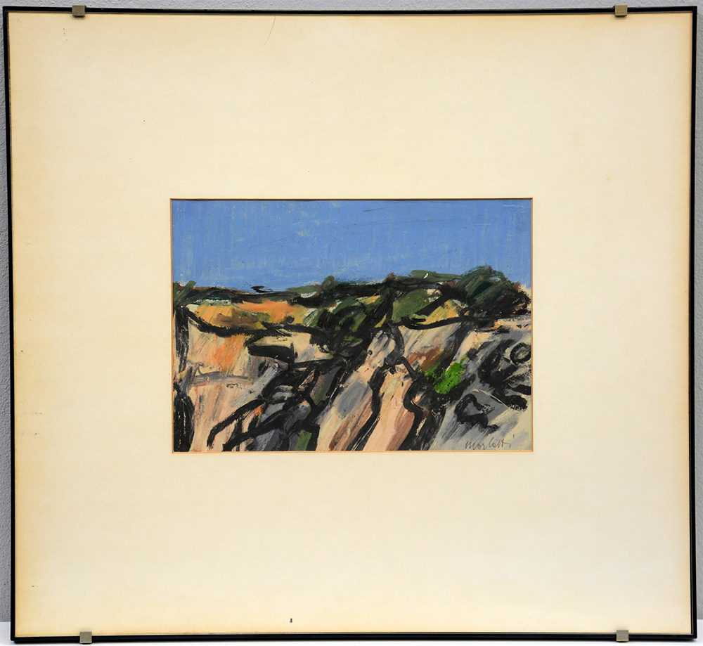 "Senza titolo" pastelli su carta (cm 23,4x32,5) firmato in basso a destra a matita. Opera accompagnata da certificato di autenticità su fotografia firmato dall'artista, Milano 16.10.81. In cornice