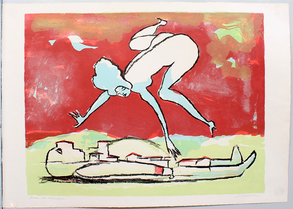 Lotto composto da numerose stampe di autori, tecniche e misure diverse tra cui Henri - Georges Adam, Mino Maccari Obrosov e un disegno raffigurante ragazza (cm 48x66,5) (lievi difetti)
