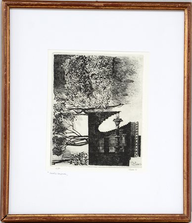 "Vecchia lampada" 1972, acquaforte (lastra cm 23,2x19) firmata e datata in lastra in basso a destra. Numerata 6/30, titolata, firmata e datata in basso a matita, in cornice