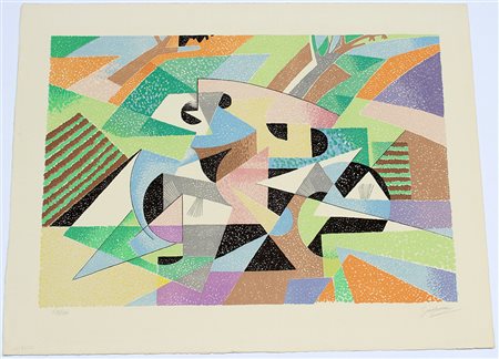 Gino Severini (Cortona 1883 - Parigi 1966)"Senza titolo" litografia a colori...