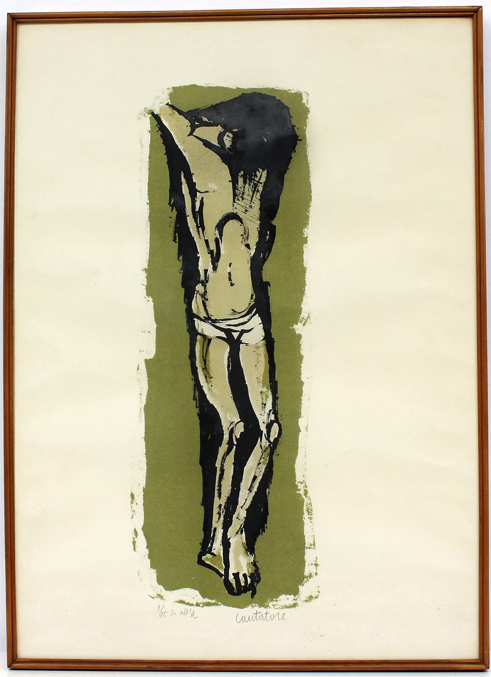 "Cristo in croce" litografia - prova d'artista (cm 67x49) numerata 9/15, dedicata e firmata in basso a matita, timbro a secco in basso a destra "Lito Castelli". In cornice (lievi difetti)