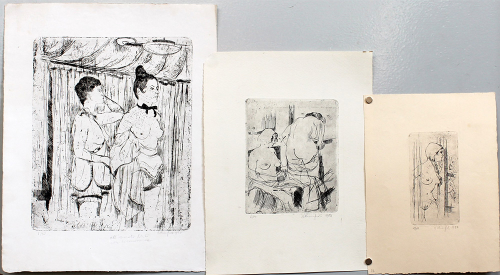Lotto composto da tre acquaforti di misure diverse raffiguranti figure femminili. Firmate, numerate e datate in basso a matita.