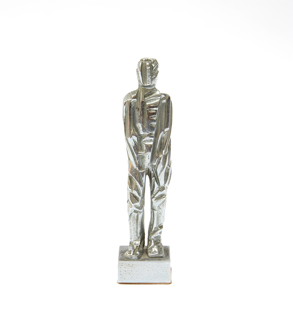 "Figura maschile" 1969, multiplo scultura in metallo (h cm 19,5) firmato, datato e numerato 9/12 alla base.