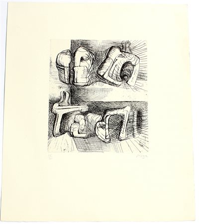 Henry Moore (Castleford 1898 - Much Hadham 1986)"Senza titolo" acquaforte...