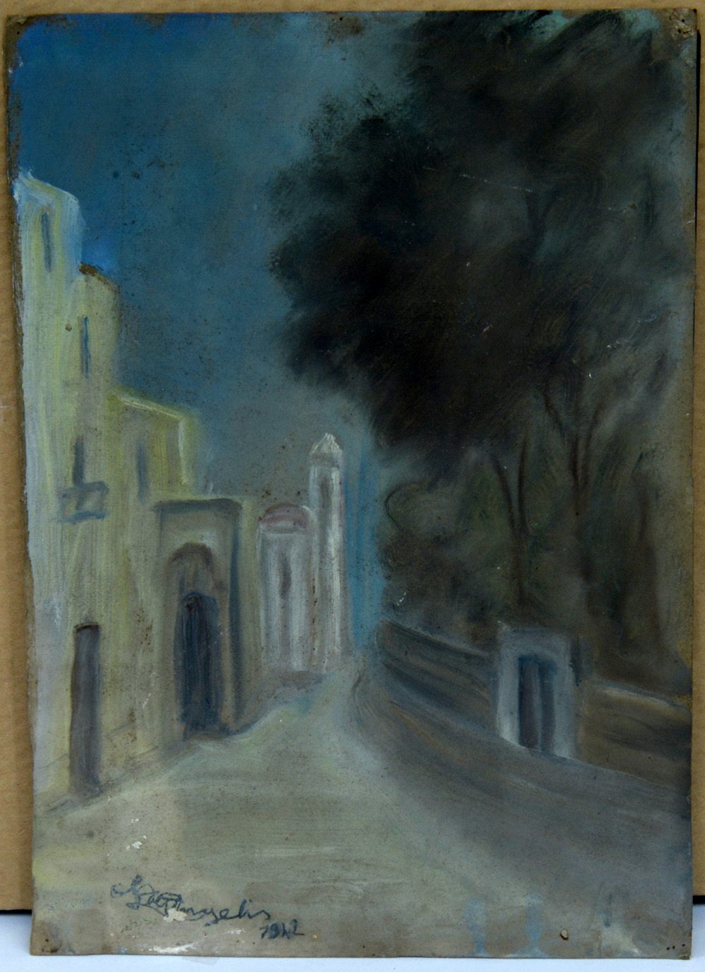 "Paesaggio 1942" pastelli colorati su carta (cm 36x25) firmato in basso a destra