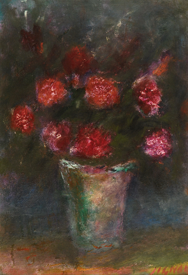 Anonimo del XX sec. Fiori Olio su cartone, cm. 49x34.5 Firma in basso a destra. € 100/200