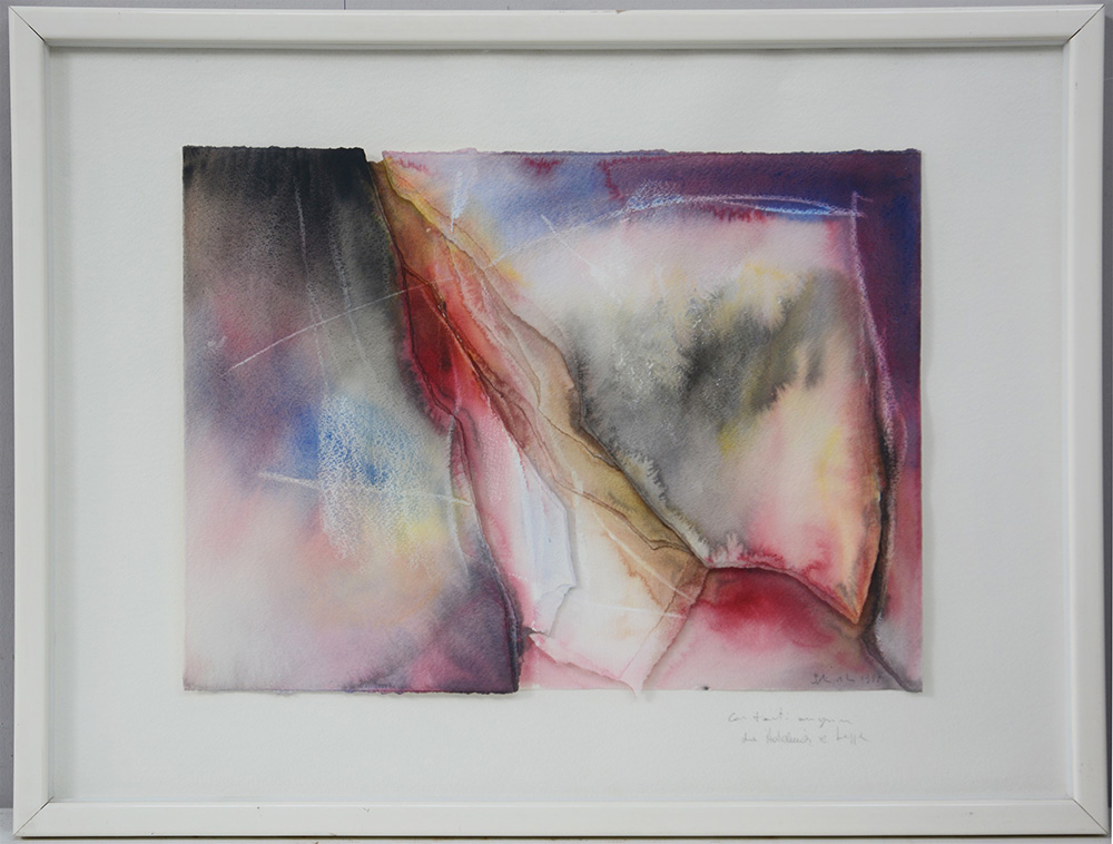 "Senza titolo" 1988, tecnica mista e collage su cartoncino (cm 40x55) firmato e datato in basso a destra. Dedicato a matita, in cornice