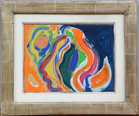 Firma indecifrata "Senza titolo" tempera su carta applicata su tela (cm 31,5x41) firmato in basso a destra, in cornice