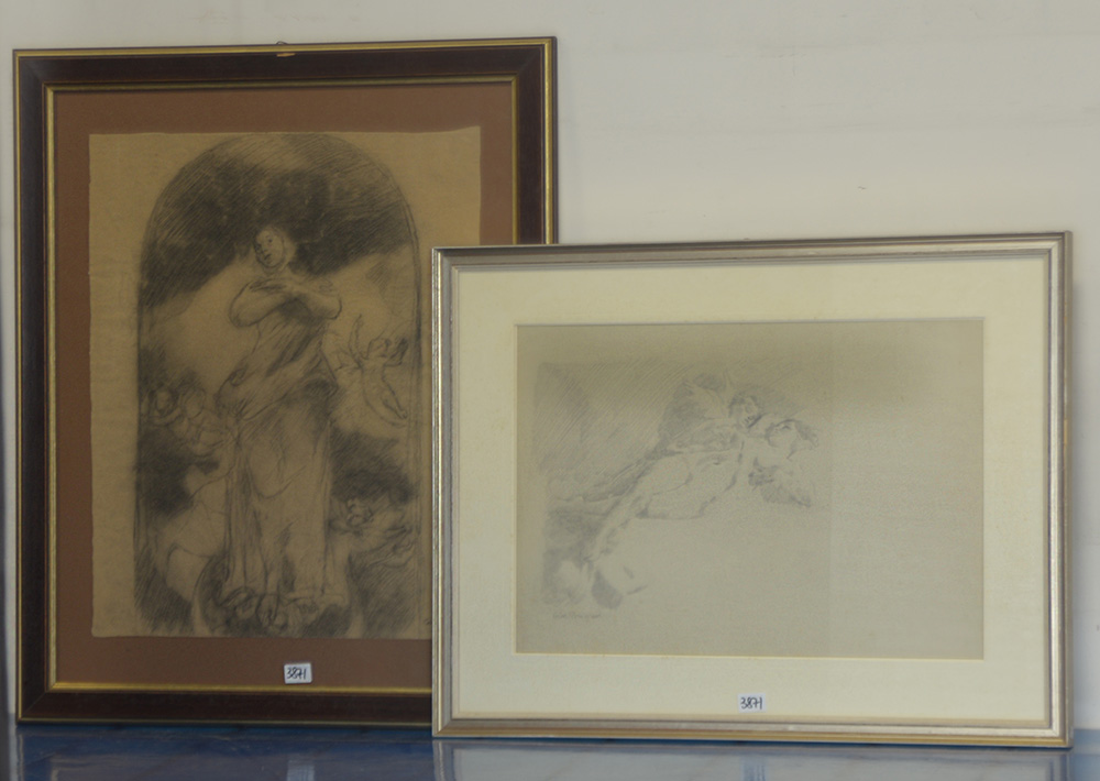 Studi, due disegni a matita su carta di misure diverse in cornici (difetti)