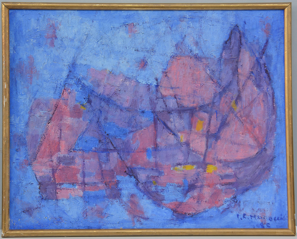 Firma indecifrata, "Aerien" olio su tela (cm 65x81) firmato e datato in basso a destra, in cornice
