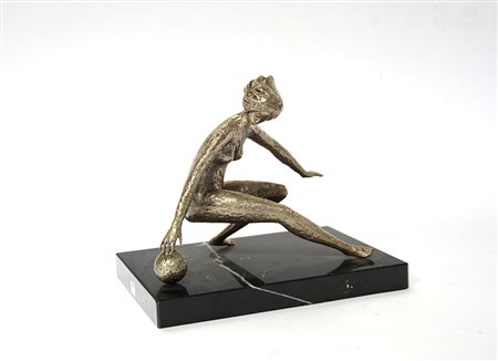 Peppe Romano "Senza titolo" scultura multiplo in bronzo su base in marmo (h...