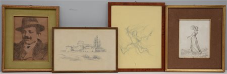 AA. VV. Lotto di quattro disegni di soggetti e misure differenti, in cornici (difetti)