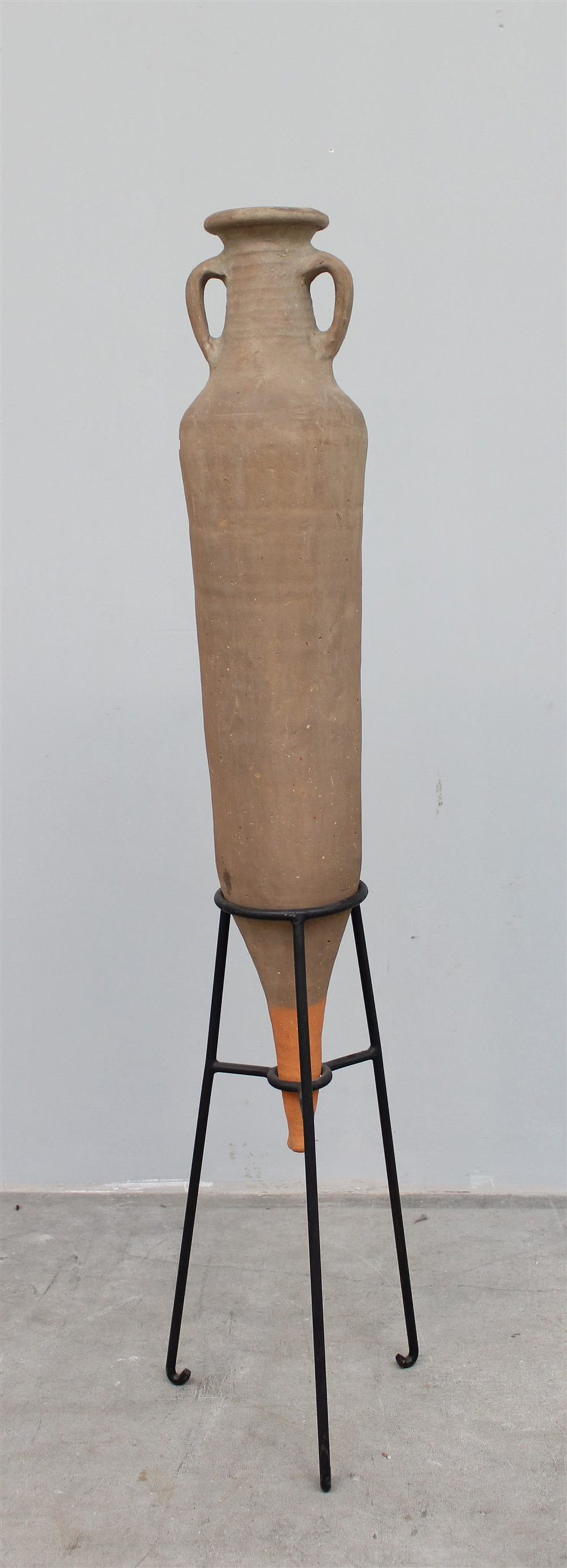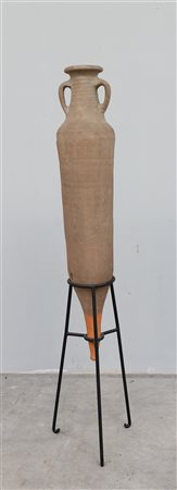 Grande anfora in terracotta con supporto tripode in ferro (h cm 140) (difetti)