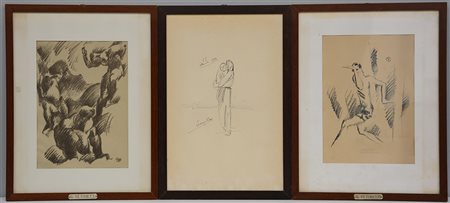 AA. VV. Lotto di tre litografie monocrome firmate Finetti e Viani di misure...