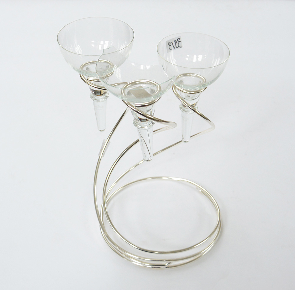 Candelabro a tre in metallo/vetro (rottura al vetro di una coppa).