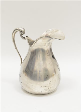 Caraffa in argento con corpo piriforme e superficie liscia. Italia metà secolo XX (g 520 ca.) (h. cm 20)