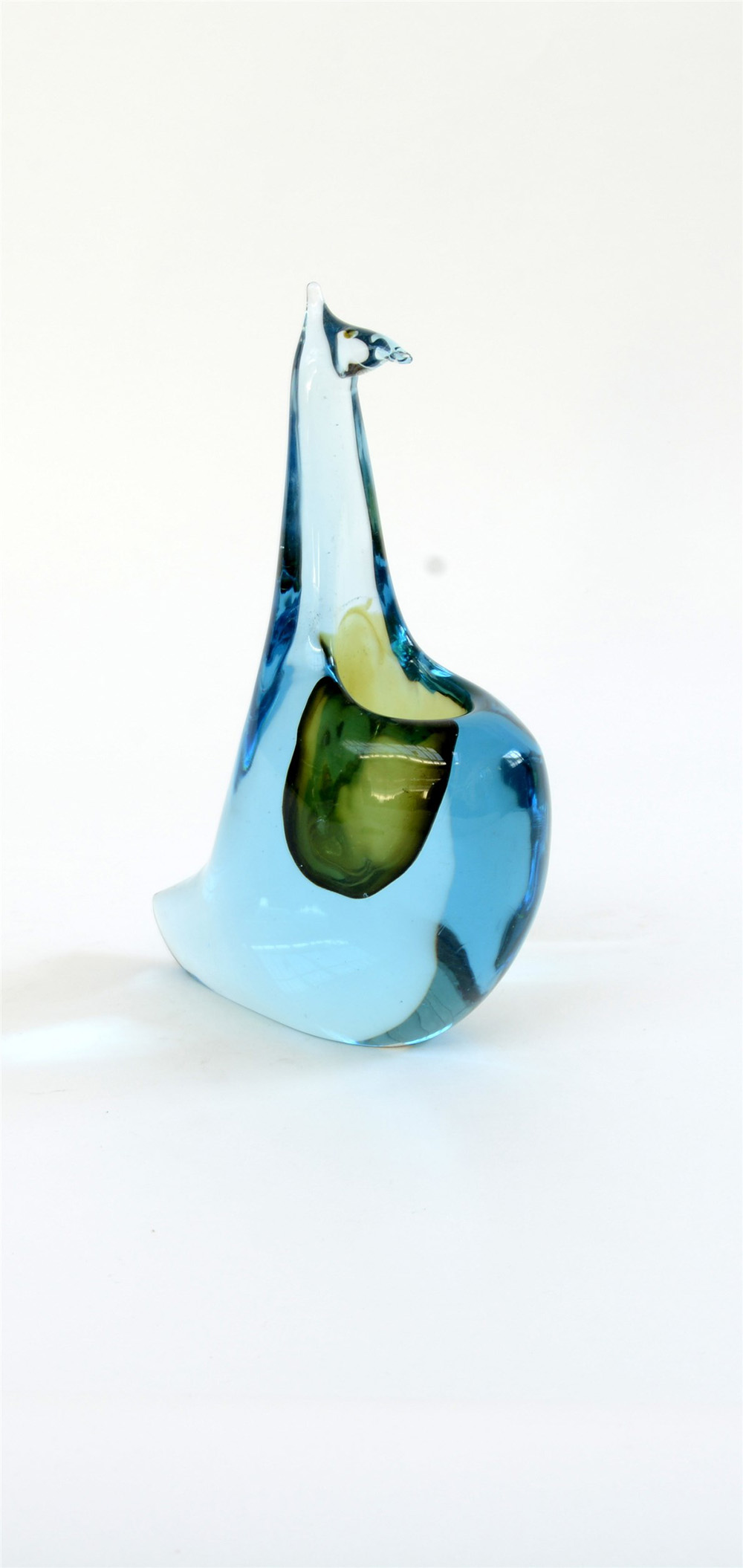 Vaso a forma di canguro in vetro sommerso in colore celeste e verde. Esecuzione recente.