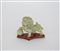 Scultura in pietra dura raffigurante leone con palla, base in legno (difetti)