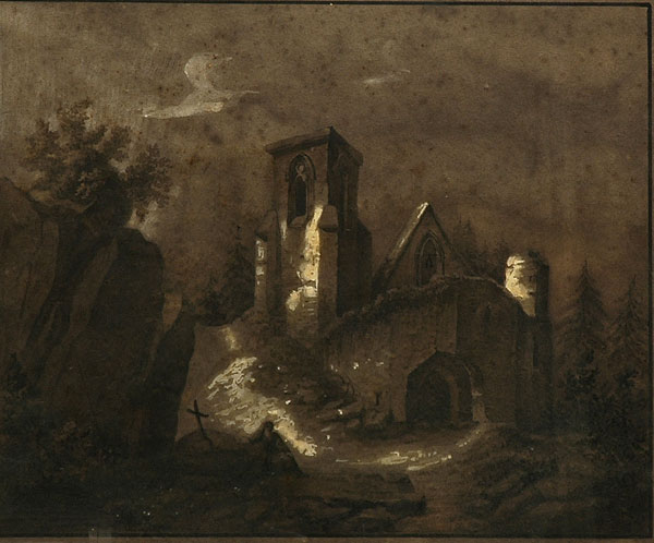 Anonimo, sec. XIX Paesaggio nordico Carboncino, cm. 20x24