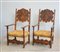 Due antiche poltrone rinascimentali con cartelle degli schienali riccamente...