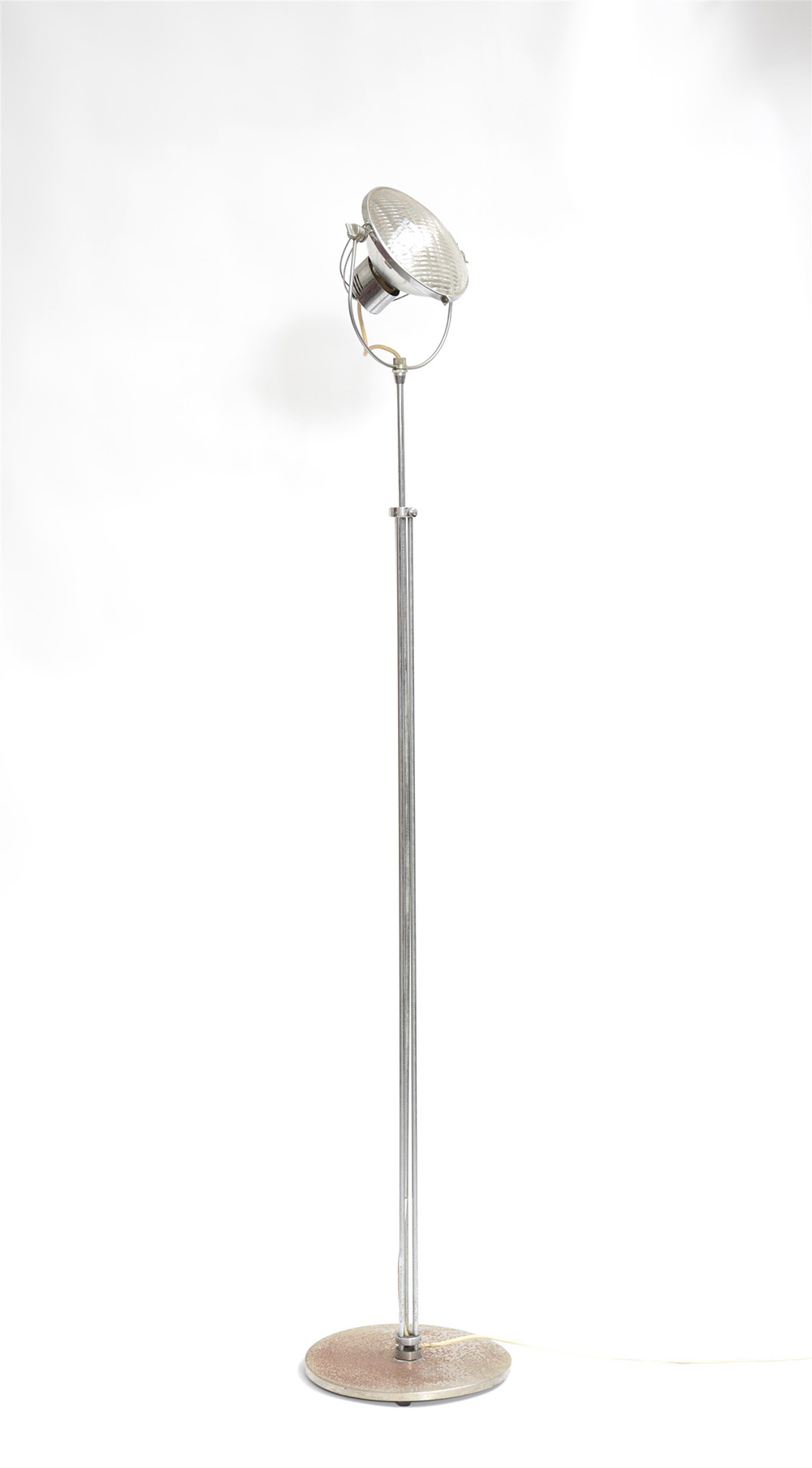 Piantana in acciaio cromato con asta e faretto regolabili. P, Philips, anni...