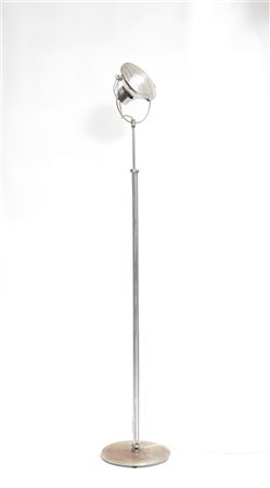 Piantana in acciaio cromato con asta e faretto regolabili. P, Philips, anni '70. (h cm 150) (difetti)