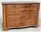 Antico comò in noce e piuma di noce mosso sul fronte, a tre cassetti più due...