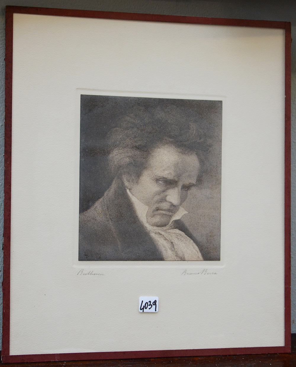 Bruno Bersa "Beethoven" acquaforte (cm 41x31 il foglio) firmata e titolata in...