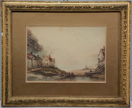 "Paesaggio nordico" 1853, acquerello su carta (cm 17x24.3) Firmato e datato in basso a sinistra. In cornice (difetti)