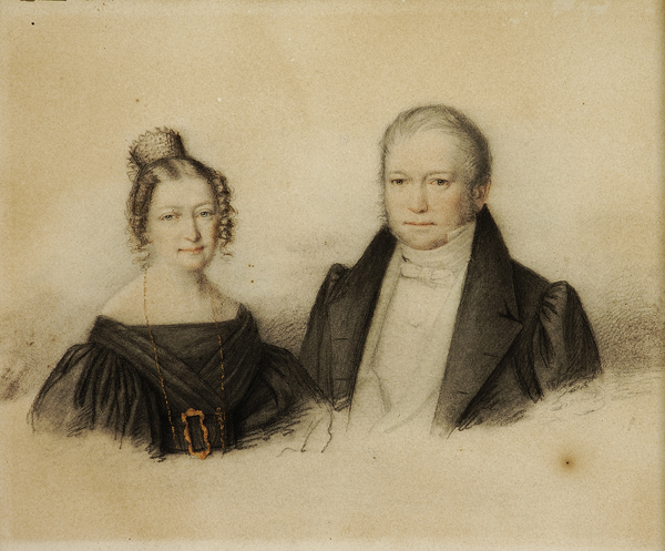 Anonimo, sec. XVIII Coppia di aristocratici Matita e acquarello su carta, cm....