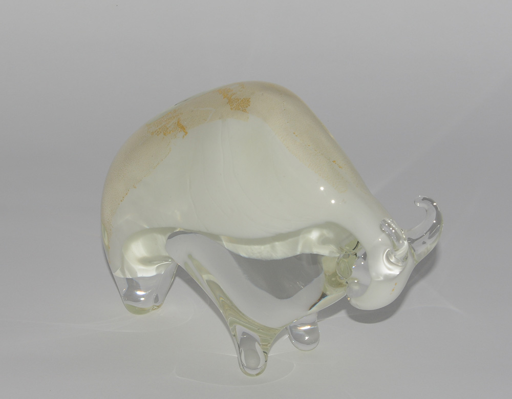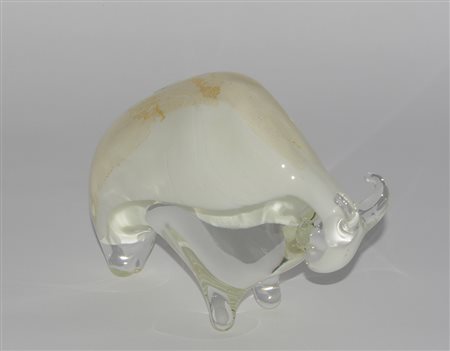 "Bisonte"Manifattura di Murano.Scultura in vetro sommerso incolore, lattimo e...