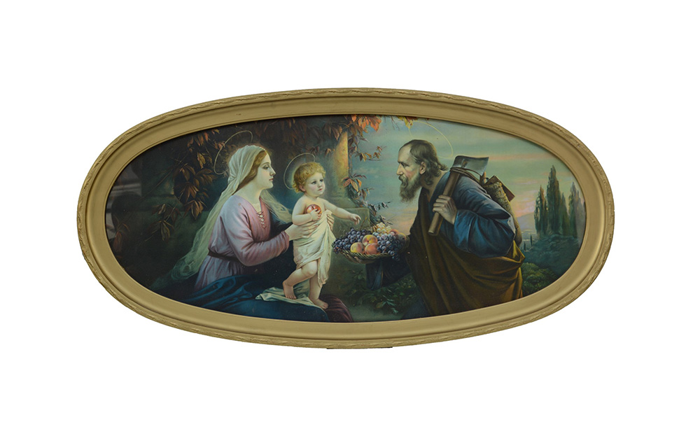 Riproduzione raffigurante la Sacra Famiglia in cornice ovale (cm 50x115)