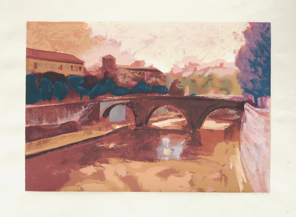 Ugo Attardi (Sori, 1923 - Roma, 2006) Ponte di Roma, 1976 Litografia, mm. 600x800; es. 100/120 Firma e data in basso a destra, triatura in basso a sinistra. € 150/250