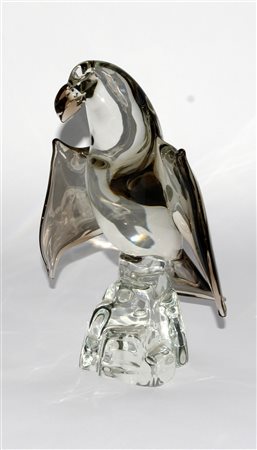 "Pappagallo"Manifattura di Murano.Scultura in vetro massello incolore e...