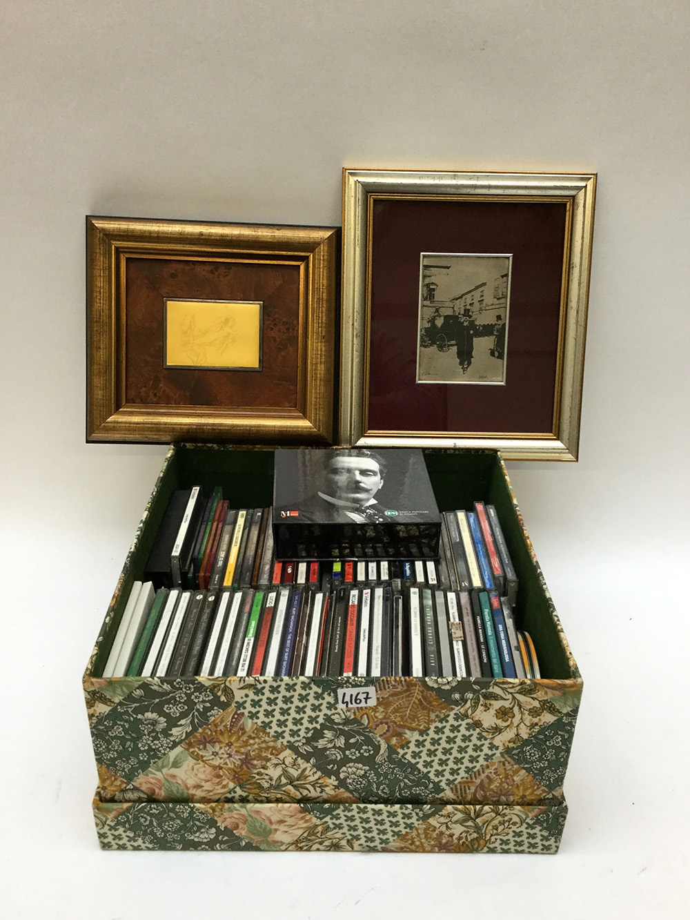 Scatola in stoffa, contenente due multipli, uno di Guttuso e uno di Rosalia Pozzi e alcuni CD