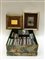 Scatola in stoffa, contenente due multipli, uno di Guttuso e uno di Rosalia...