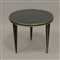 Tavolino da salotto tondo a tre gambe coniche rivestite in similpelle, piano...