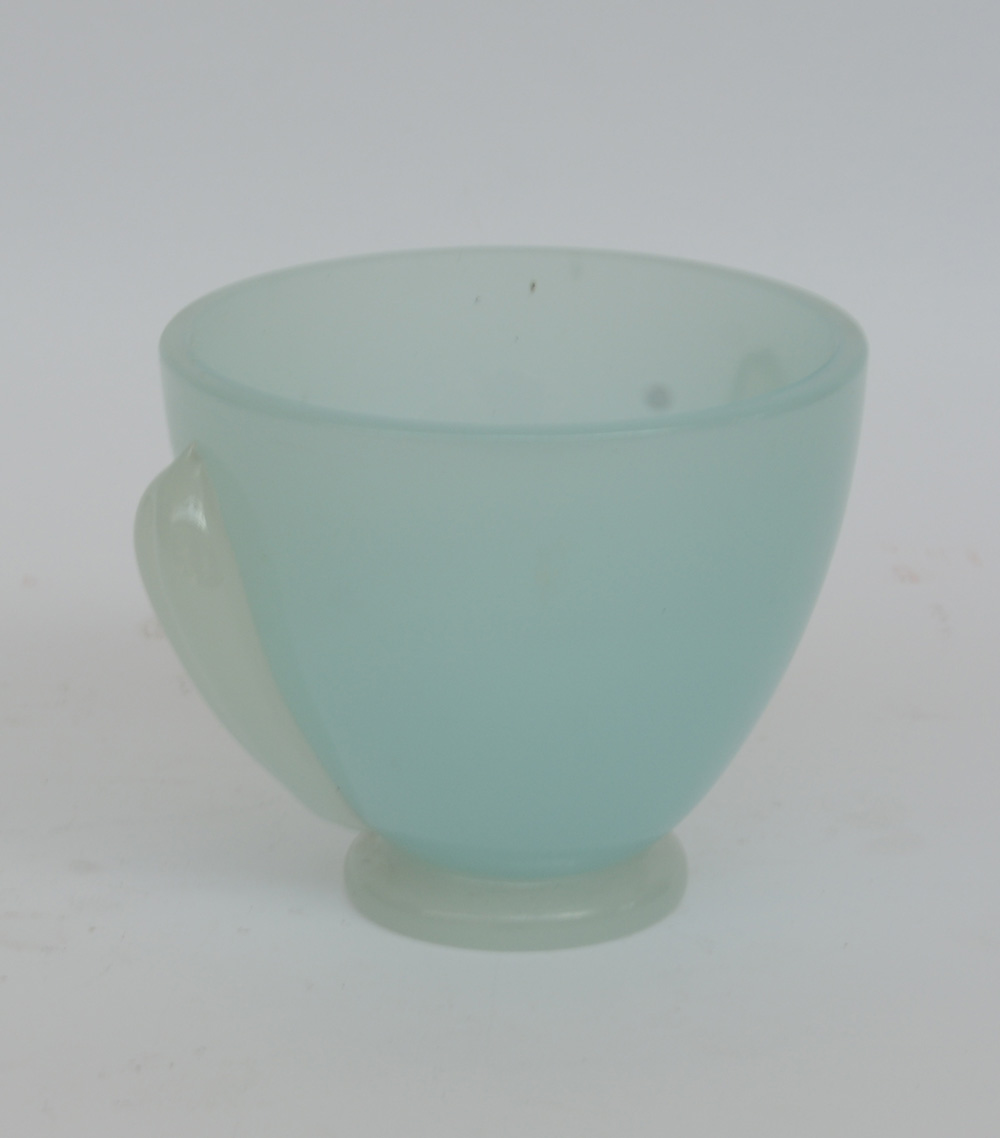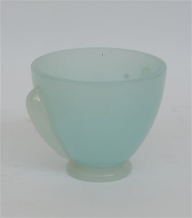 Vaso biansato. Vetro massiccio, soffiato e molato, color acquamarina. (h cm 14) (difetti e mancanze)