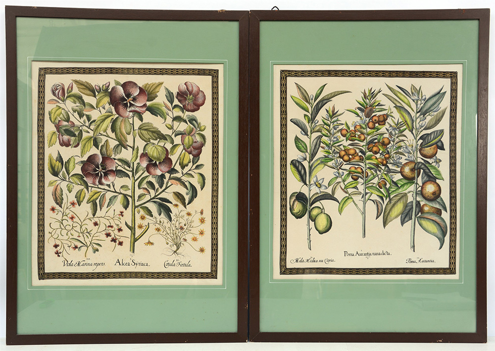Coppia di incisioni a colori raffiguranti piante (cm 54x47 circa) in cornici (lievi difetti)