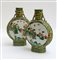 Coppia di vasi moonflask in porcellana Famiglia Verde su fondo giallo, con...