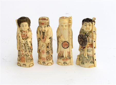 Lotto composto da quattro sculture in osso raffiguranti immortali taoisti...