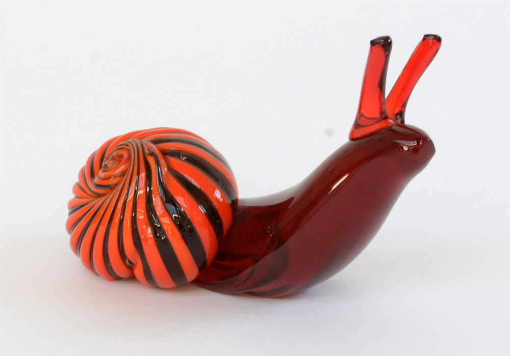 "Chiocciola"Manifattura di Murano.Scultura in vetro rosso trasparente,...