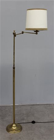 Lampada da terra in ottone a una luce con altezza regolabile e braccio snodabile, base circolare. (difetti)