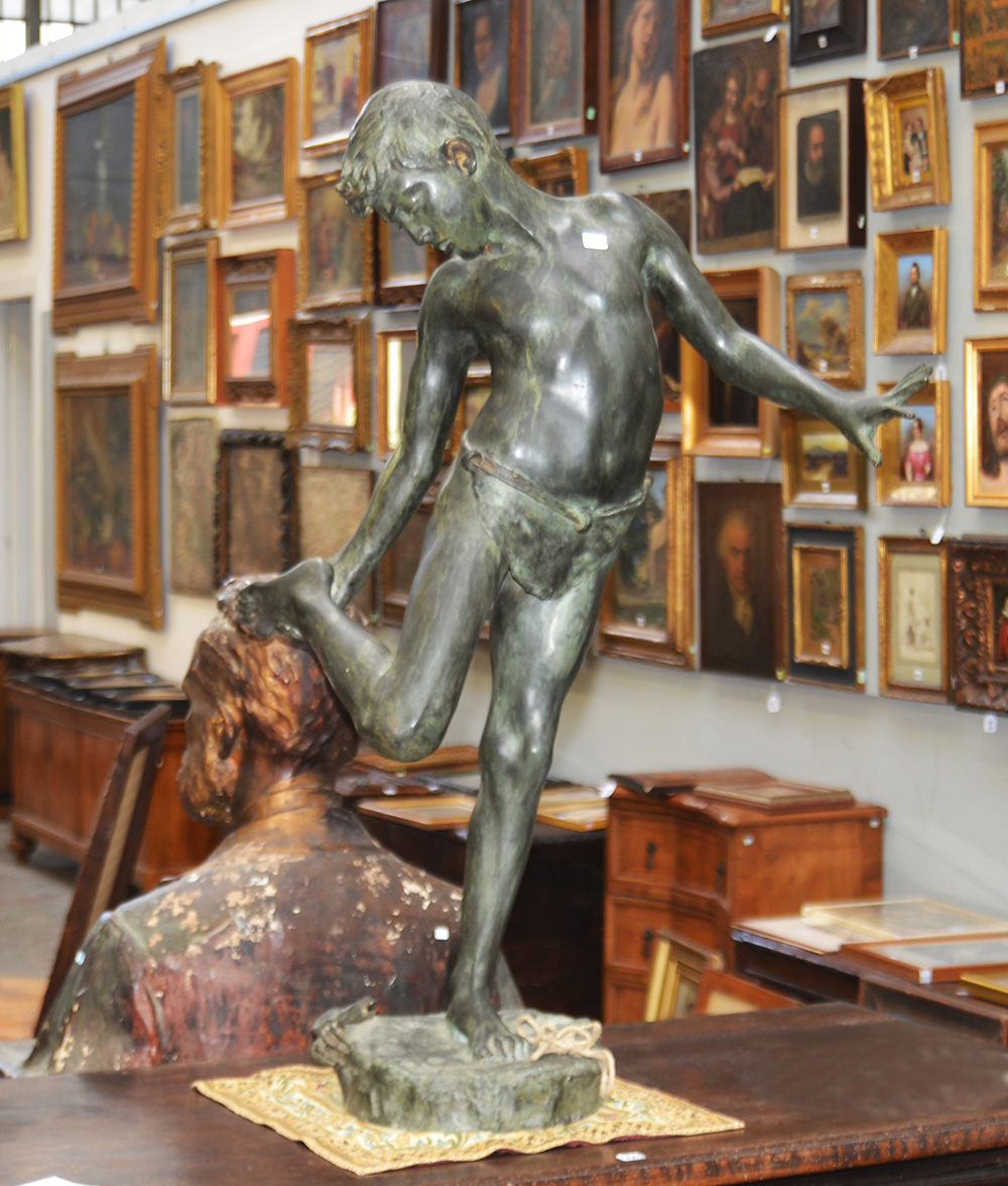 Dall'opera di Annibale De Lotto, "Ragazzo morso da un granchio" grande scultura in bronzo (h cm 102) (difetti)